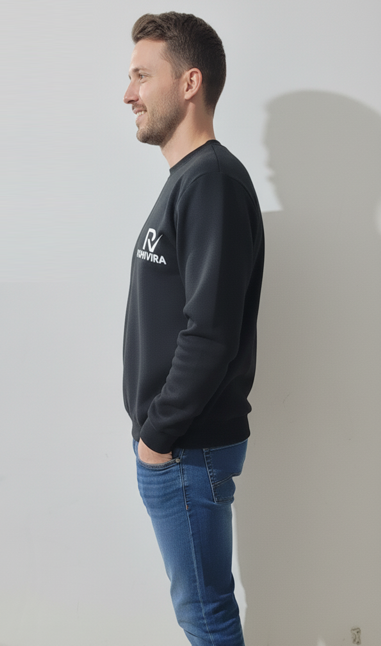 The elegant Sand black shade gives a soft, classy, and versatile look that pairs well with jeans, joggers, or winter layers. Featuring ribbed cuffs, a structured neckline, and a clean silhouette, this sweatshirt ensures a comfortable and flattering fit. The minimalist Rohivira logo on the left chest adds a modern and stylish touch without overpowering the design.