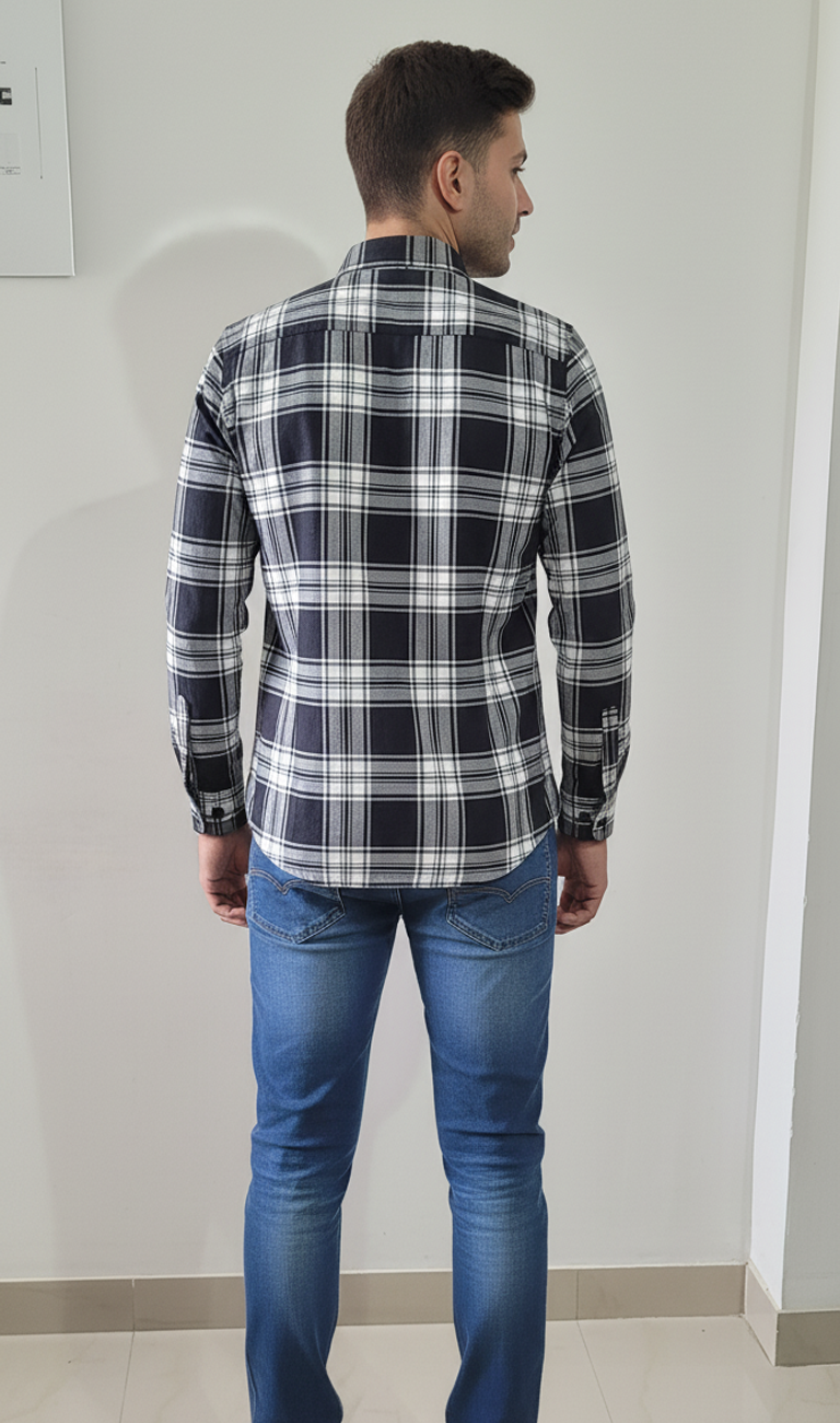 Classic black and white checked shirt designed for a sharp, versatile look. Perfect for casual outings, office wear, or weekend get-togethers.