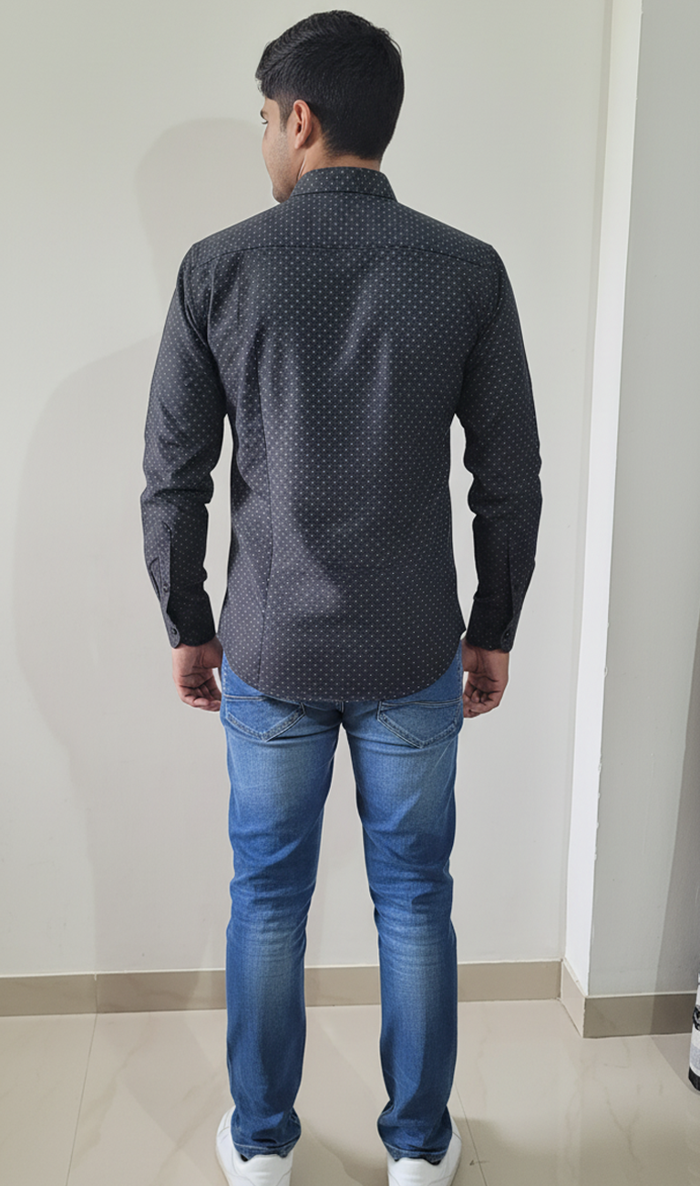 1 review for Black & White Dot Slim Fit Casual Shirt for Men