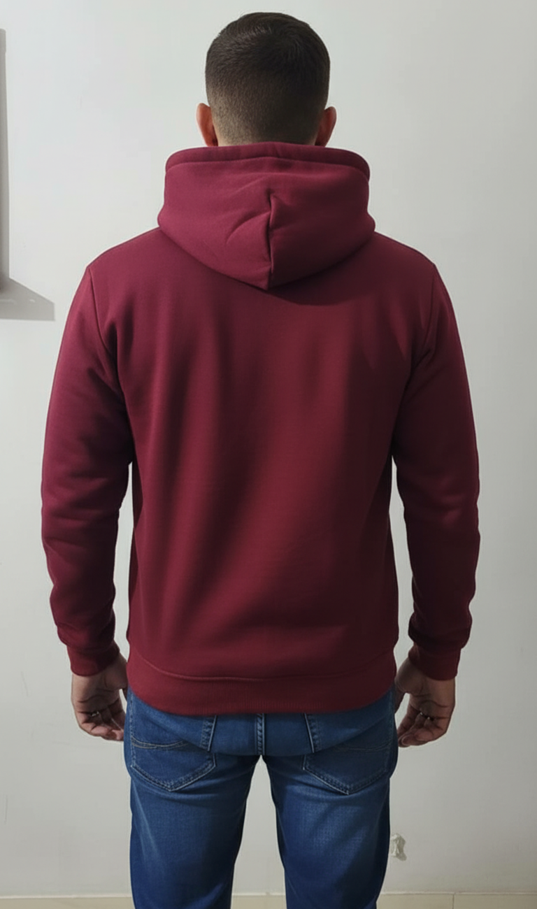 This premium maroon hooded sweatshirt is made from high-quality 320 GSM PC fleece, offering superior warmth, durability, and a soft, cozy feel. Designed for everyday comfort, it features a smooth outer finish with a plush brushed interior to keep you warm in colder weather.