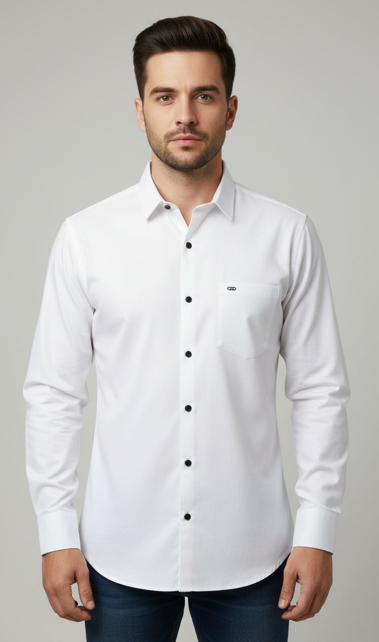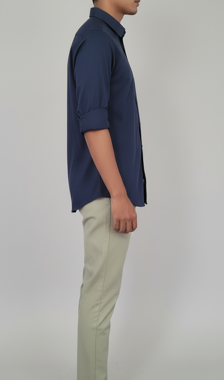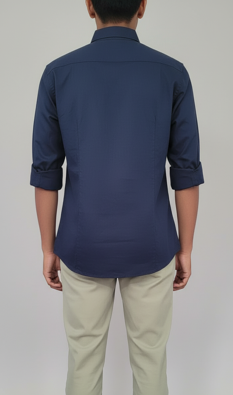 -35% Off Inclusive of all TaxesA versatile men’s full-sleeve shirt in a solid Navy Blue. Features a classic button-down design and a single chest pocket. Essential for a smart, casual, or business-casual look.