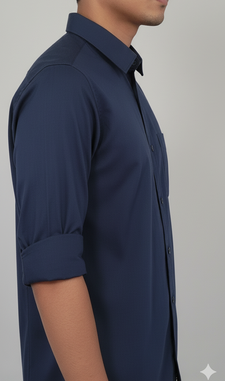 Men’s Dark Blue Plain Full-Sleeve Shirt