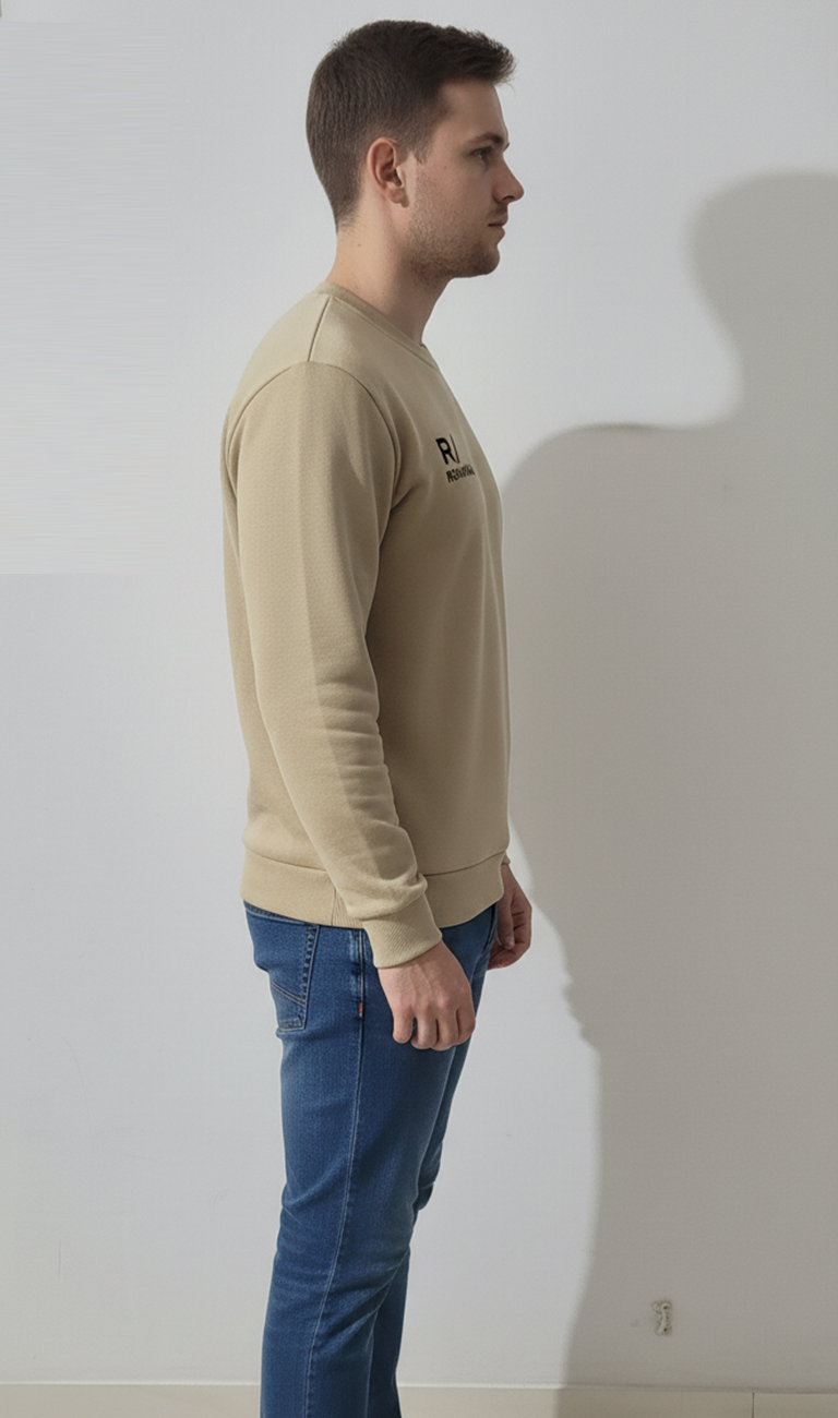 The elegant Sand Beige shade gives a soft, classy, and versatile look that pairs well with jeans, joggers, or winter layers. Featuring ribbed cuffs, a structured neckline, and a clean silhouette, this sweatshirt ensures a comfortable and flattering fit. The minimalist Rohivira logo on the left chest adds a modern and stylish touch without overpowering the design.